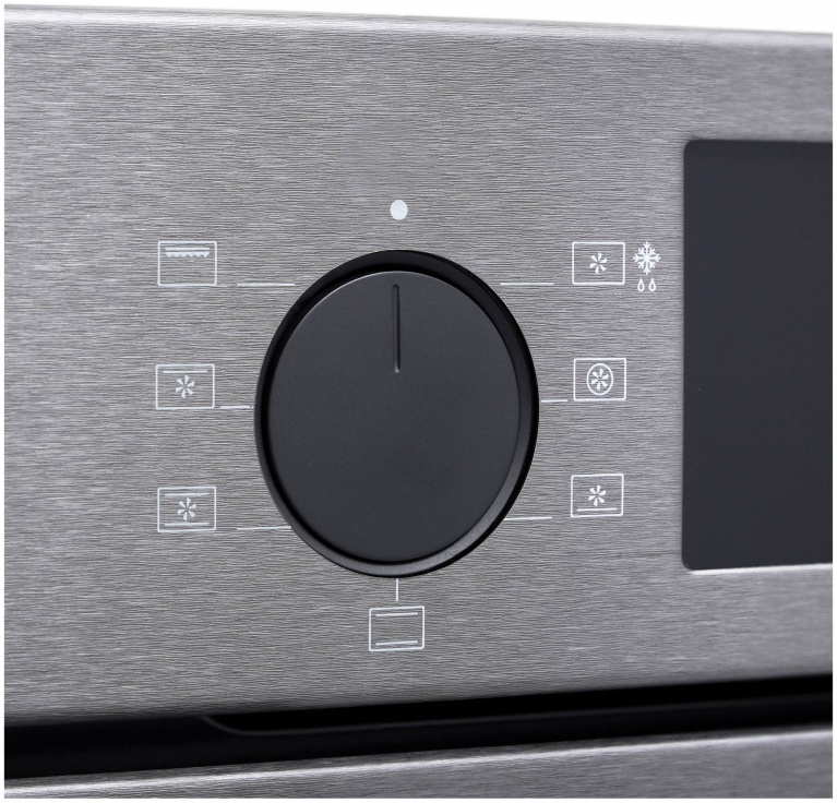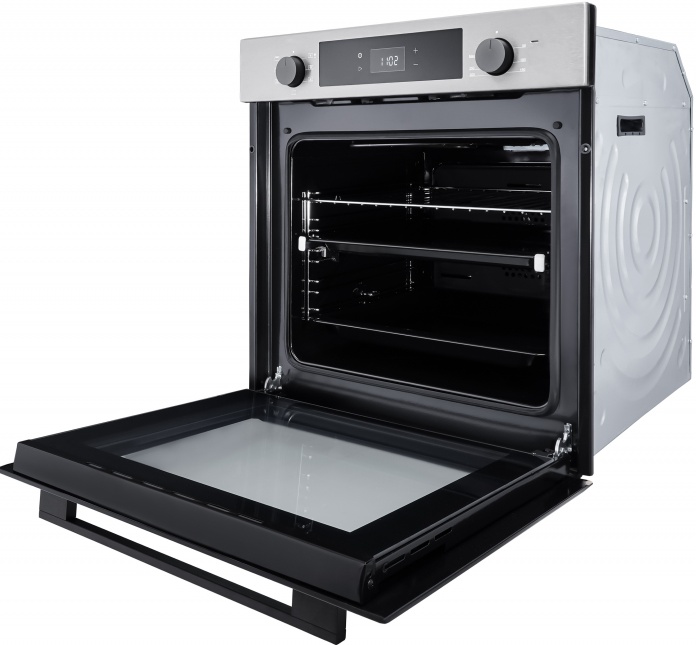 Семь режимов нагрева: традиционный (верхний + нижний нагрев), нижний нагрев + конвекция, верхний нагрев + конвекция, конвекционный нагрев, кольцевой нагрев с конвекцией («горячий воздух»), конвекционное размораживание (вентилятор без нагрева) и большой гриль (верхний нагрев + гриль). Комбинированная система очистки: каталитическая (специальное покрытие на стенках активно расщепляет жир и загрязнения при высоких температурах прямо во время готовки) и паровая (позволяет размягчить застарелые загрязнения, после чего их легко удалить). Электронный таймер с функциями звукового сигнала, отключения и отложенного старта. Система тангенциального охлаждения создаёт воздушный барьер, защищая электронику и окружающую мебель от перегрева. Автоматическое отключение срабатывает в случае перегрева или длительной работы. Телескопические направляющие на одном уровне, облегчающие извлечение тяжёлых противней. Класс энергопотребления A+ гарантирует значительную экономию электроэнергии. В комплект входят противень для выпечки, хромированная решётка и глубокий противень.