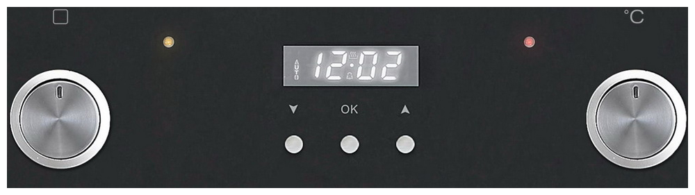 Духовой шкаф оснащён механическим управлением с утапливаемыми ручками и кнопками. На дисплее отображается текущее время. Цифровой таймер позволяет установить необходимое время приготовления, о его окончании сообщит звуковой сигнал. Модель оснащена защитным отключением и вентилятором охлаждения корпуса. Есть блокировка дверцы духовки. Духовой шкаф изготовлен из стекла чёрного цвета с элементами из нержавеющей стали. Дверца оснащена двухслойным стеклом. Внутреннее покрытие — эмаль лёгкой очистки. Направляющие для противней — хромированные, съёмные. Дверца духовки съёмная, внутреннее стекло легко вынимается. Подсветка камеры. Позволяет следить за процессом приготовления блюда. Часы. Встроенные электронные часы. Тангенциальное охлаждение. Обдув стенок холодным воздухом, который обеспечивает безопасность не только людей, но и кухонной мебели.