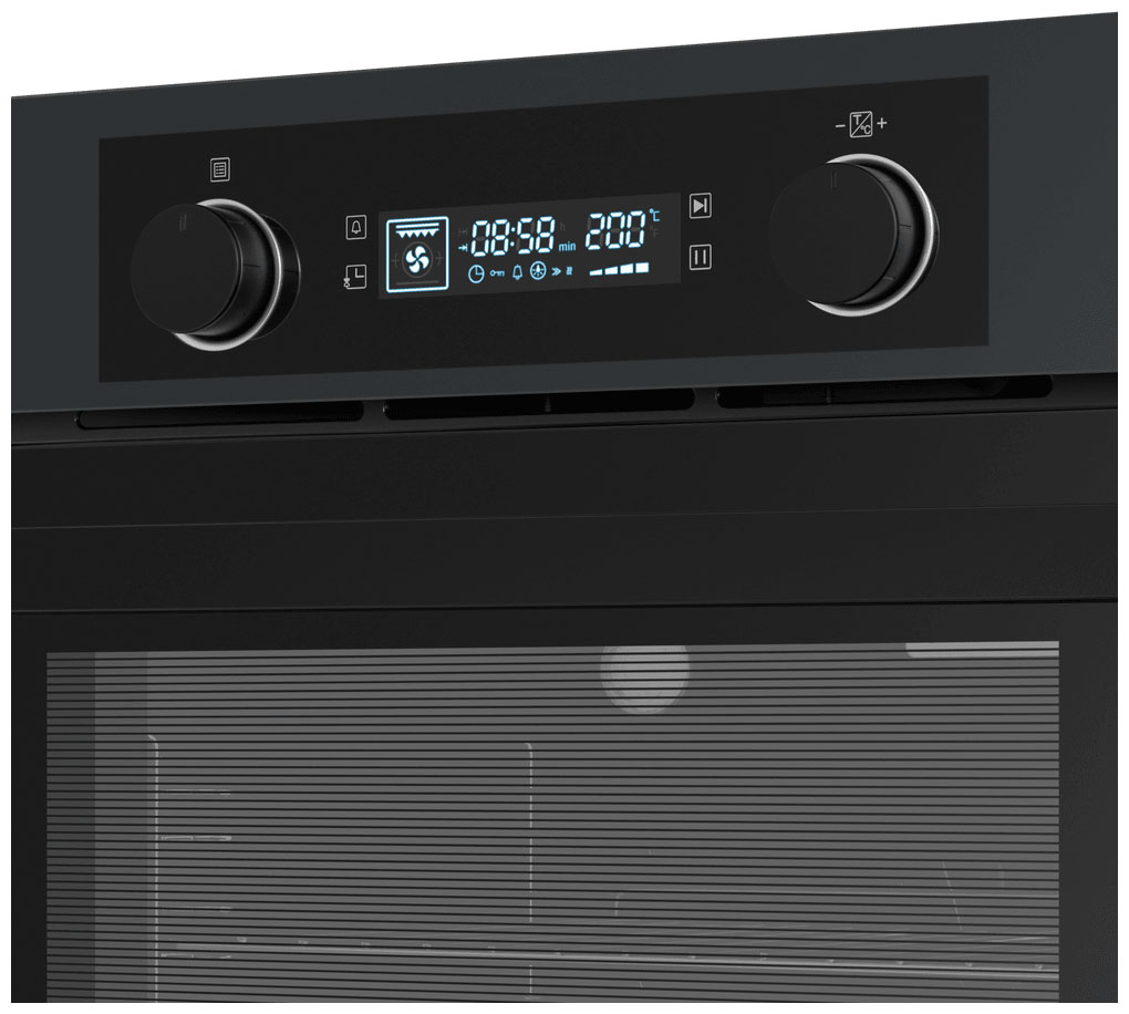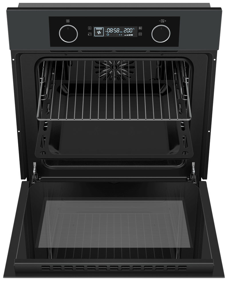 6 режимов работы: верхний и нижний нагрев, верхний и нижний нагрев с конвекцией, размораживание, гриль, гриль с конвекцией и режим Эко. Максимальная температура: 250 °C. Подсветка внутреннего пространства: облегчает контроль за процессом приготовления блюд. Функция «Блокировка от детей»: блокирует элементы управления, чтобы избежать случайного включения духового шкафа детьми. Технология «Холодный фронт»: оберегает от ожогов при прикосновении к духовке. Тройное стекло: защищает дверцу духового шкафа от перегрева. Класс энергоэффективности: А, что гарантирует эффективность устройства при минимальном расходе электроэнергии. Внутреннее покрытие: эмаль лёгкой очистки, упрощает уход после окончания готовки.