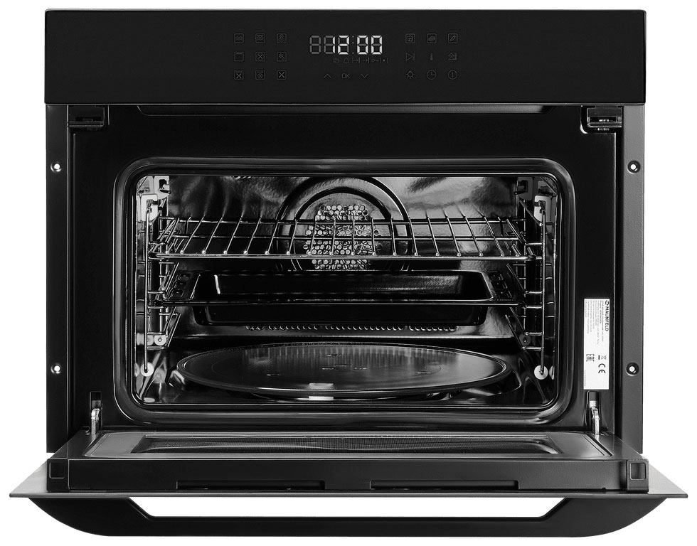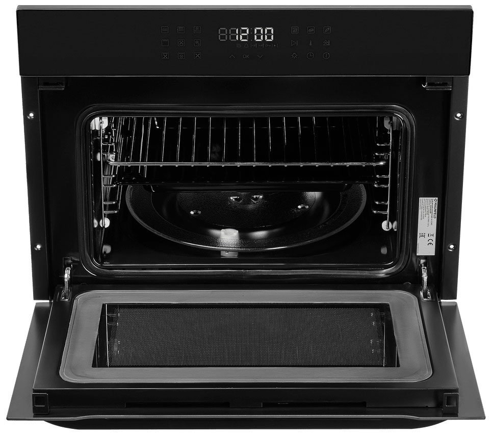 Гриль + кольцевой нагревательный элемент + вентилятор. Микроволны + гриль. Микроволны + кольцевой нагревательный элемент + вентилятор. Автоменю.