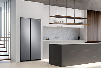 Модель Samsung RS61R5001M9 отличается цельным, лаконичным дизайном в духе современного минимализма. Гладкая дверца без выступающих ручек легко вписывается в любой интерьер, создавая гармоничную и стильную композицию. Утопленные механизмы открывания не нарушают чистоту линий, что делает модель не только высокотехнологичным прибором, но и эстетичным элементом кухонного пространства.