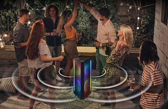 Функция Party Lights+ превращает вашу вечеринку в незабываемое зрелище. Выбирайте из предустановленных световых эффектов, таких как Party, Ambient, Dance, Thunder Bolt или Star, и синхронизируйте их с музыкой через удобное мобильное приложение. Создайте уникальную атмосферу, танцуя под мерцающие огни.