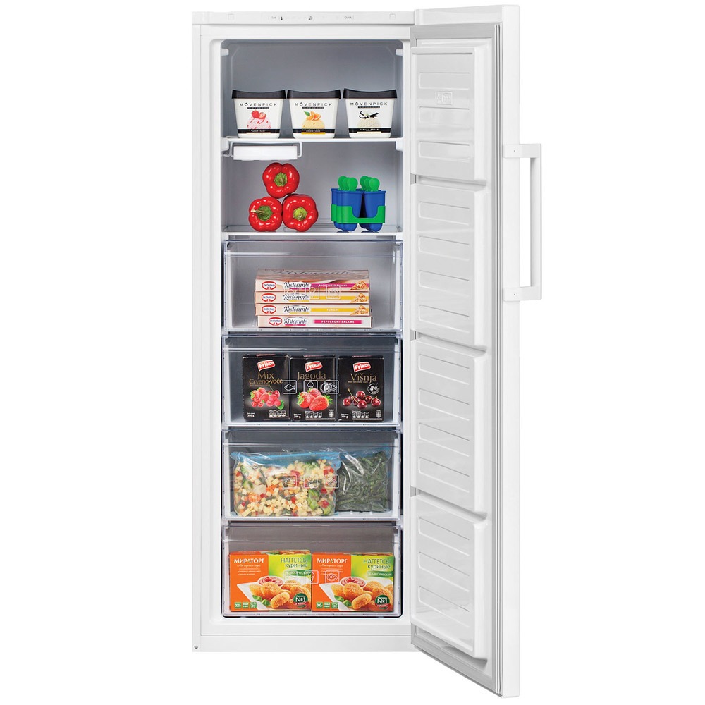 Электронное управление с внутренним дисплеем для точной настройки и поддержания необходимой температуры. Функция быстрой заморозки (Quick Freeze) для сохранения формы и пользы свежих продуктов. Сигнал открытой двери. Перенавешиваемые двери для установки в различных помещениях. Антибактериальный уплотнитель на дверях для предотвращения размножения микроорганизмов и образования неприятных запахов. Уровень шума 40 дБ для комфортной работы. Класс энергопотребления A и годовой расход 321 кВт·ч для экономичной эксплуатации. Климатический класс SN-ST для работы в широком диапазоне температур окружающей среды от +10 °С до +38 °С.