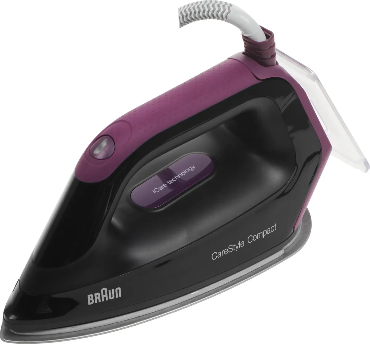 Парогенератор для одежды Braun CareStyle Compact IS2144BK 2400Вт, сиреневый/черный Мощность [Вт]: 2400 Тип стопы: Элоксаль Особенности: Автоматический выбор температуры, Вертикальный паровой удар, Регулировка потока пара, Система защиты от накипи, Автоматическое отключение утюга, Блокатор капель Давление пара [бар]: 6 Дополнительный паровой удар [г/мин]: 460 Регулировка пара: Да Выход пара [г/мин]: 125 Индекс: 397521 Современное решение для каждого дома Сочетание компактных размеров с функциональностью парогенератора обязательно понравится людям, которые хотят сэкономить время, затрачиваемое на домашние дела, и место для хранения мелкой бытовой техники. BRAUN IS2144BK — уникальная модель, идеально подходящая для любого помещения. Благодаря ему глажка будет быстрой и беспроблемной, а вы сможете уделить время тому, что вам действительно нравится. Эффективная глажка, безопасная для тканей Благодаря используемым технологиям парогенератор BRAUN IS2144BK справится даже с самыми большими складками, позаботившись при этом о вашей одежде. Инновационная конструкция лапки и турборежим обеспечивают комфортную глажку даже самых сложных частей одежды, таких как: карманы, промежутки между пуговицами, оборки или складки. iCare режим Кроме того, современный режим iCare, используемый в представленной модели, интуитивно подстраивает температуру под тип ткани, защищая вашу одежду от повреждений. Благодаря этому вы сможете наслаждаться любимыми рубашками или платьями еще дольше! Непревзойденный комфорт использования Парогенератор BRAUN IS2144BK — инновационное устройство, созданное для людей, которые ценят не только экономию места и времени, но и удобство. Используемые технологии позволяют эффективно разгладить все складки без необходимости раскладывать гладильную доску! Быстрое обновление Дополнительный мощный паровой удар и возможность вертикальной глажки идеально подходят для деликатных тканей, свитеров и одежды с покроем, который затрудняет глажение традиционным способом, позволяя быстро освежить любимую одежду за гораздо более короткое время. Генератор, который безопасен для вас и окружающей среды Инновационный парогенератор BRAUN оснащен рядом дополнительных опций, повышающих безопасность использования. Функция автоматического отключения через 10 минут неиспользования снижает риск возгорания или выхода из строя установки, а экономичный режим ECO позволяет использовать почти на 50% меньше энергии по сравнению с другими программами.