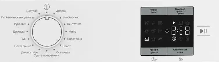 быстро, гигиеническая сушка, деликатное, джинсы, микс, освежить, полотенце, постельные, рубашки, синтетика, спорт/верхняя одежда, сушка по времени, хлопок, хлопок Эко